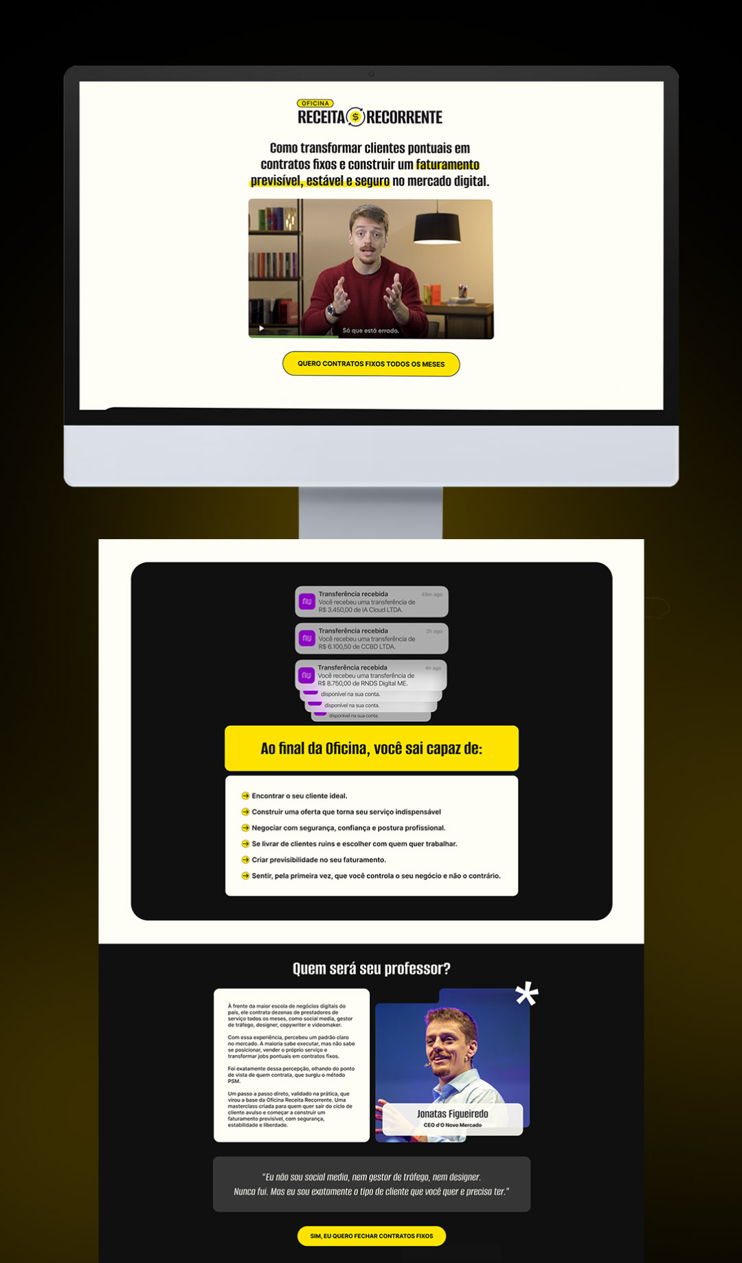 Layout de todas as páginas do funil Oficina Receita Recorrente, do ONM.
